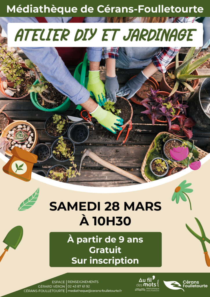 La médiathèque de Cérans-Foulletourte organise un atelier DIY et jardinage le samedi 28 mars à 10h30. À partir de 9 ans, gratuit.
