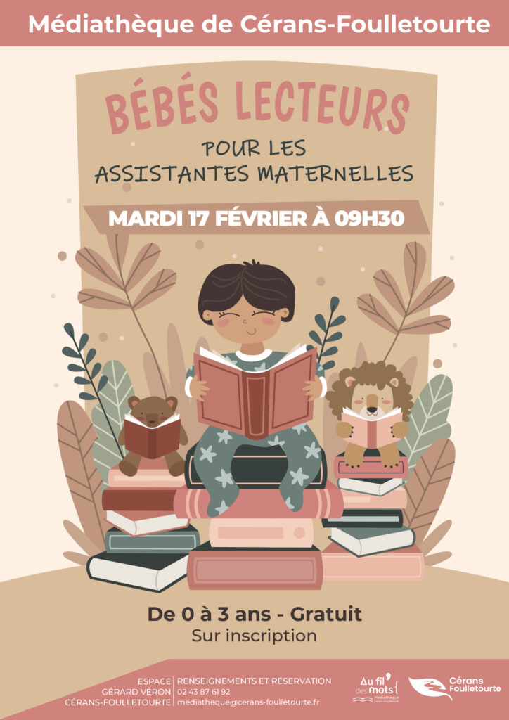La médiathèque de Cérans-Foulletourte propose une séance de bébés lecteurs à destination du tout public le samedi 7 février à 10h00. Gratuit, sur inscription au 02 43 87 61 92 ou par mail à mediatheque@cerans-foulletourte.fr