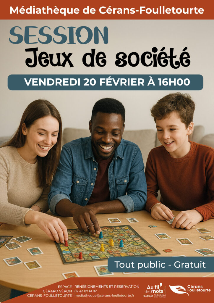 La médiathèque de Cérans-Foulletourte propose une session jeux de société le vendredi 20 février à partir de 16h00. Tout public – Gratuit.